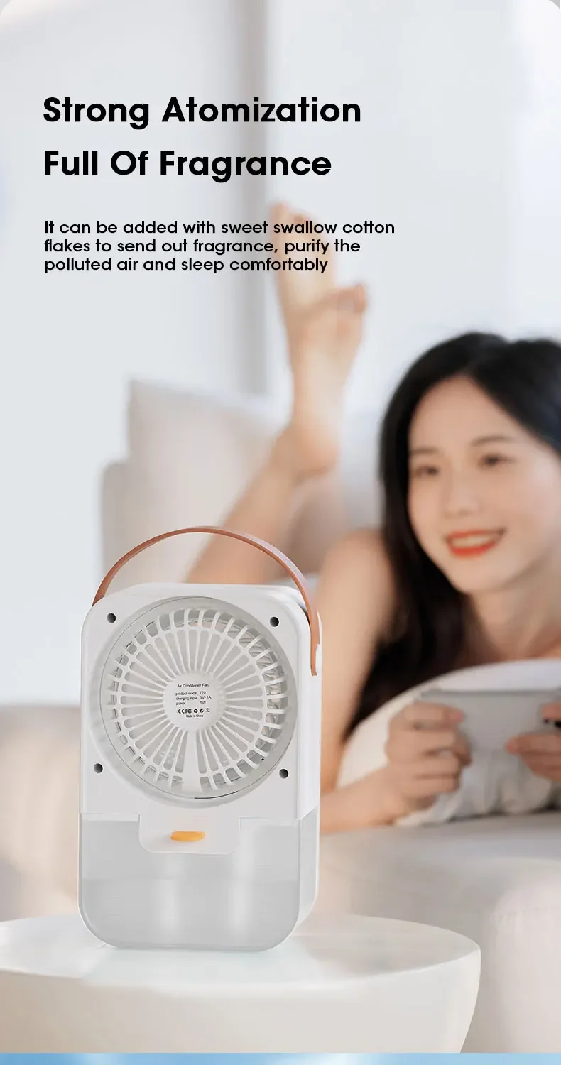 5.Rechargeable: The water mist fan has build-in rechargeable battery and handheld design, convenient for you to use offline anytime, anywhere.