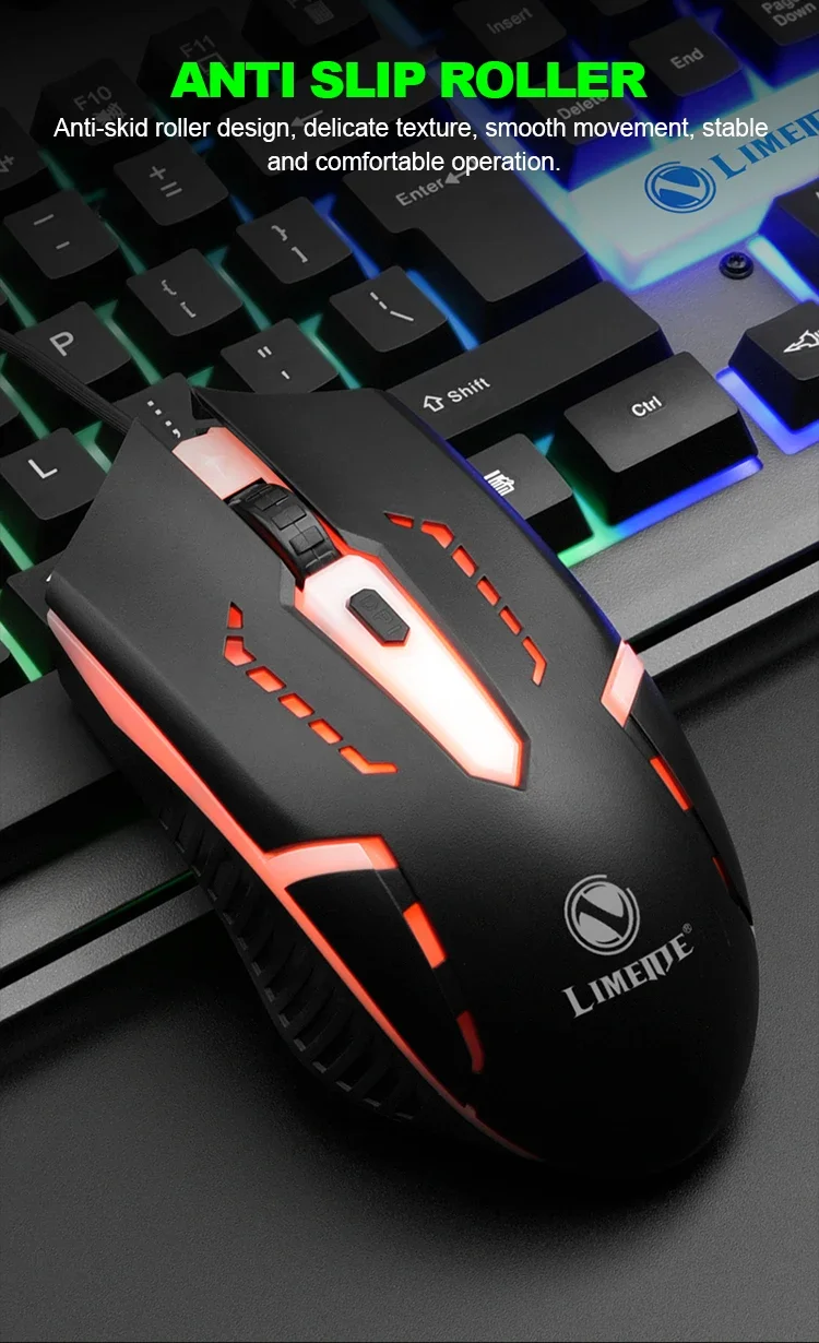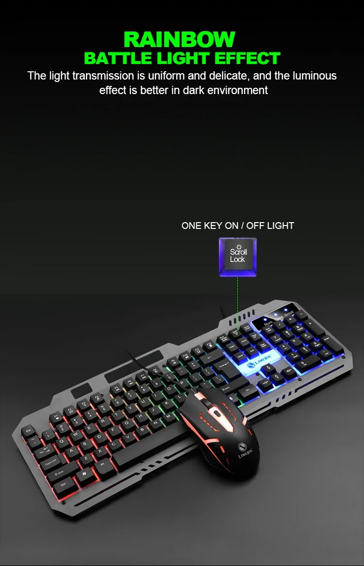 JP-2 USB Wired Gaming Keyboard RGB Backlit Keyboard with Silent Backlit Gaming Mouse Set for Office PC Gaming PC Laptop