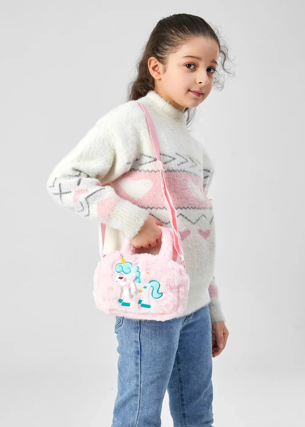 Kids Embroidery Unicorn Plush Toy Crossbody Purses Handbags Little Girls Rainbow Fluffy Purse Cute Cartoon Furry Shoulder Bag