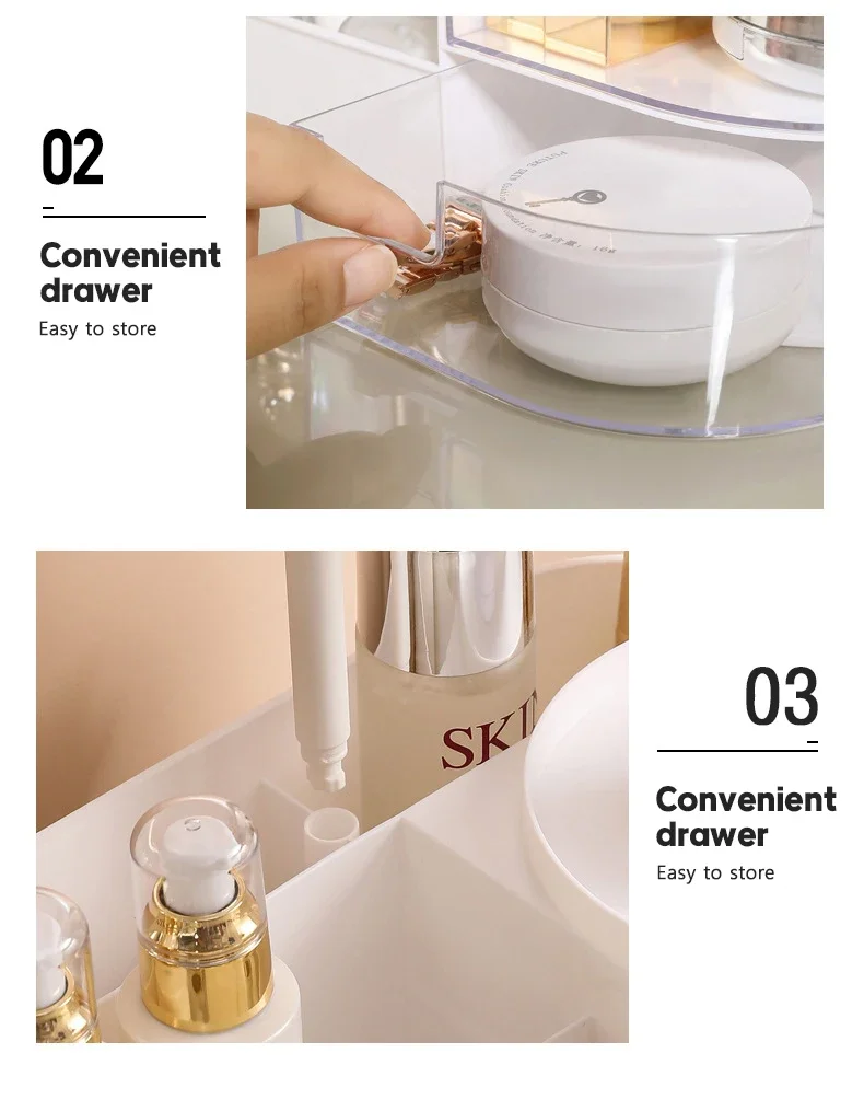 Large Capacity Cosmetic Storage Box with Clear Drawer - Multi-functional Makeup Organizer for Dressing Table Skincare Products a