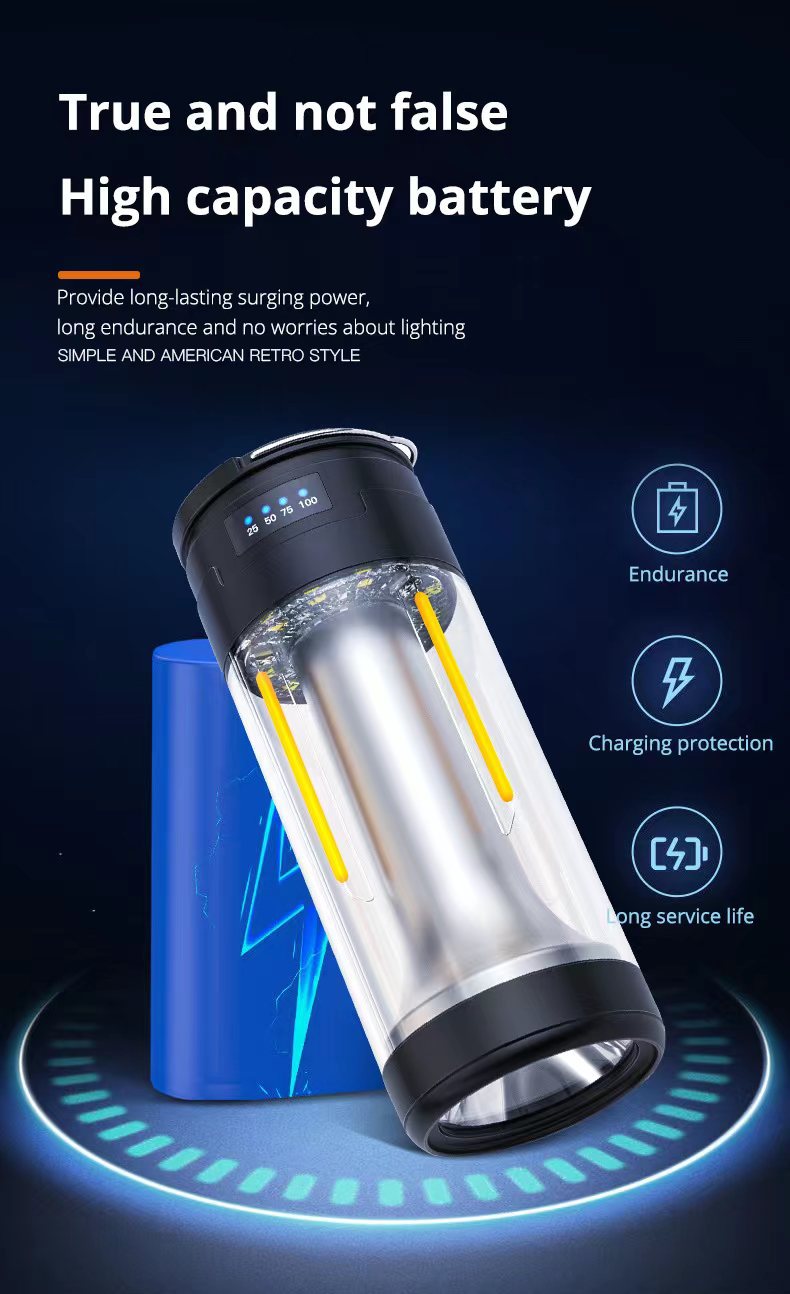 LED Rechargeable Camping Lights Outdoor Portable Emergency Bulb Lights USB Battery Bright Flashlight With Hook