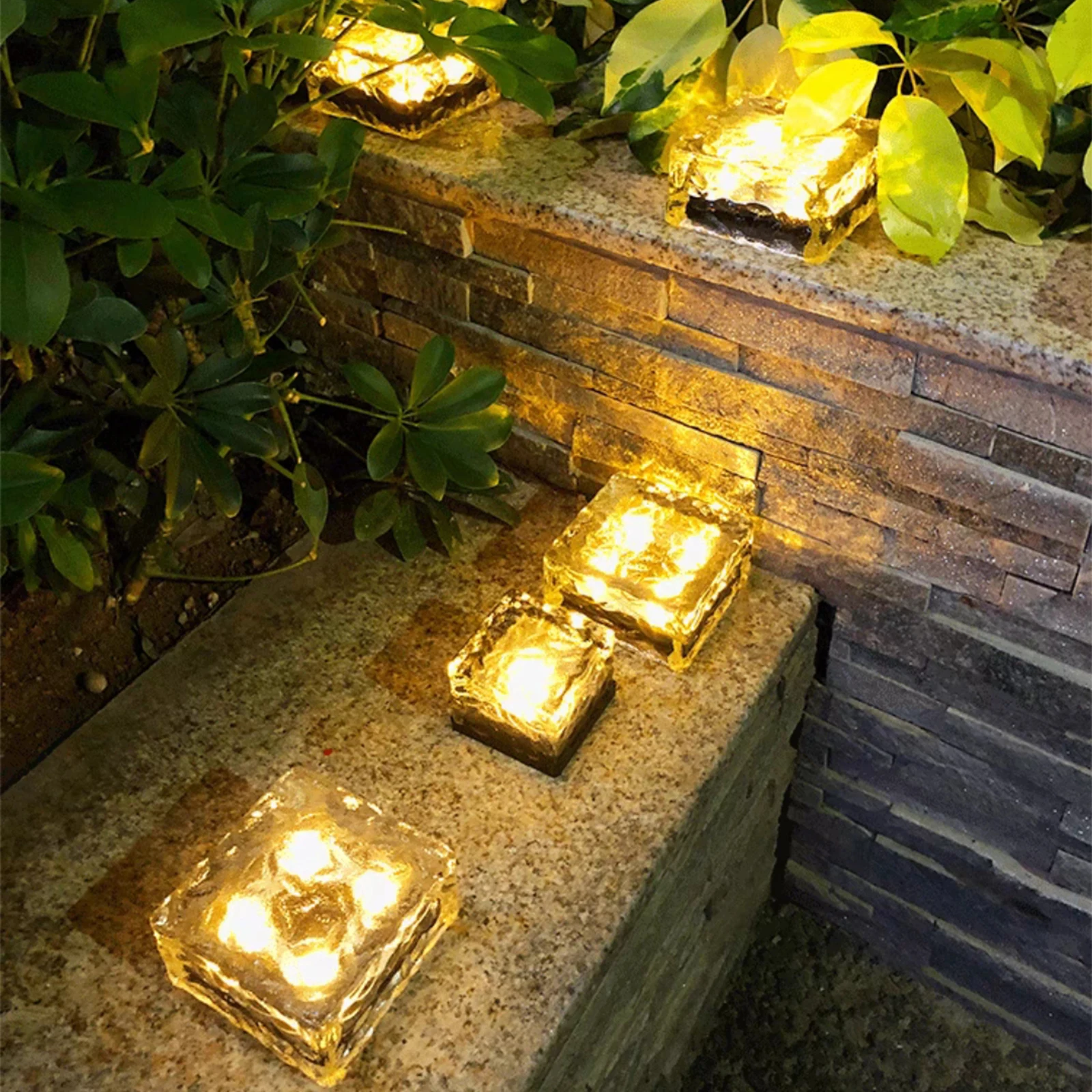 LQWELL Solar Brick Light 4PC Solar Light 8 Modes Decorative Outdoor Solar Glass Paving Stones Path Lighting Ice Stone Light