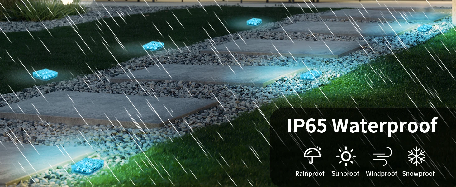 1.【Waterproof Solar Lights】These solar glass brick lights can be safely used outdoors and are waterproof to withstand the elements of everyday life, snow, rain and sun. P.S. Cannot be submerged in water