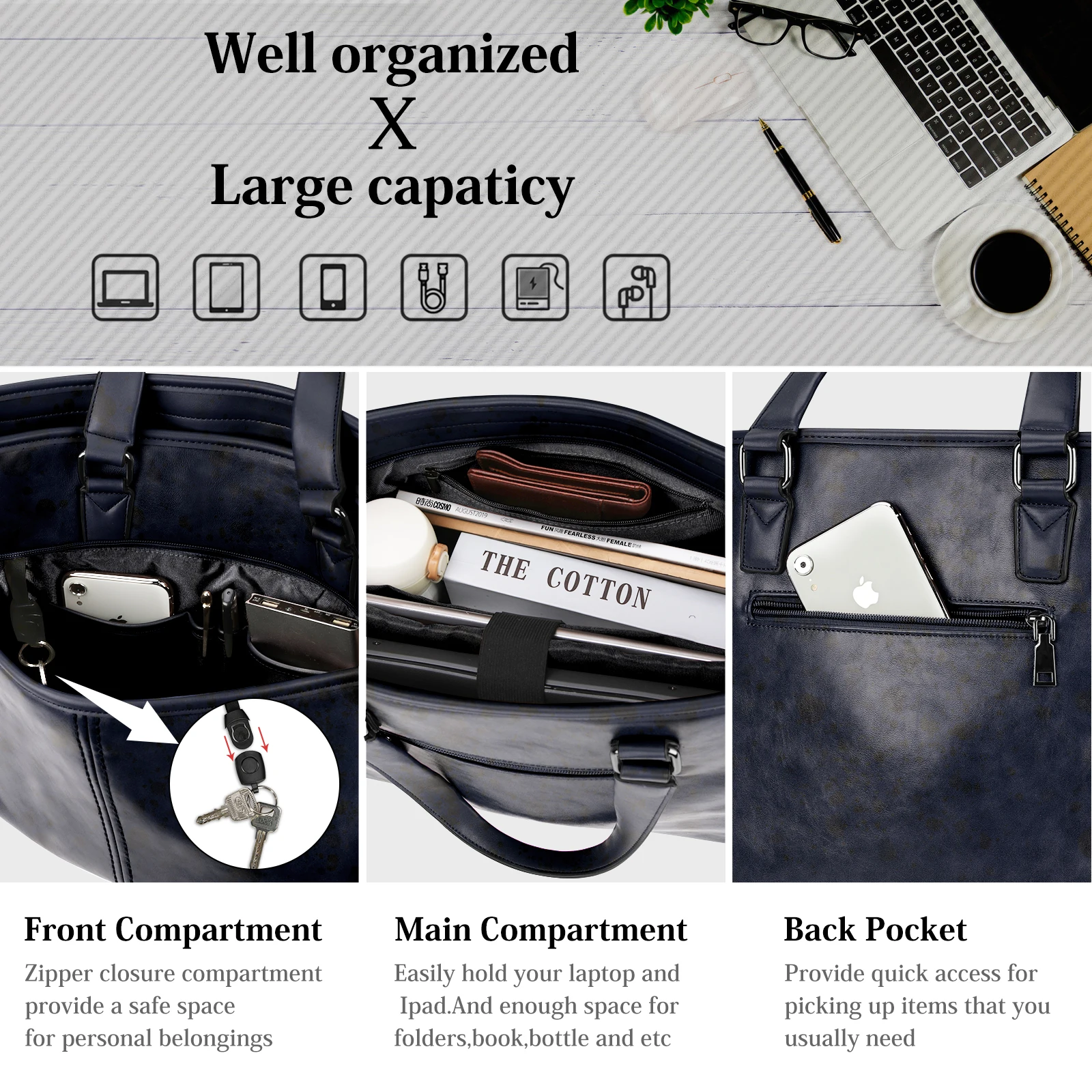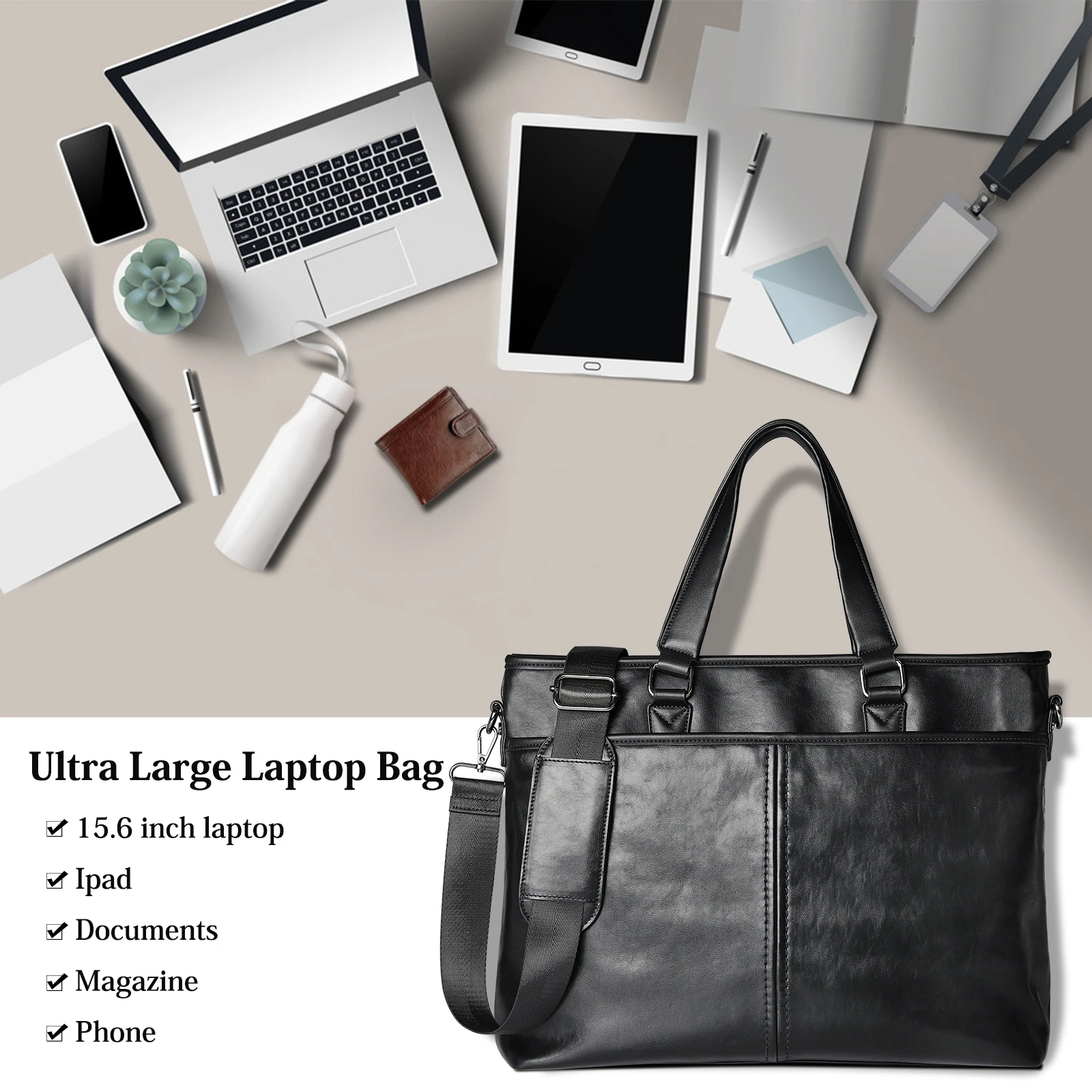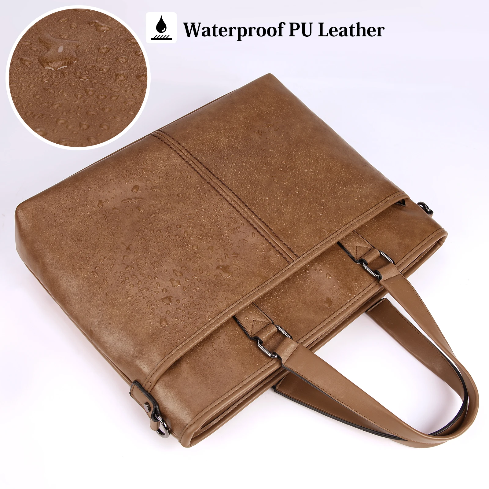 Lubardy Business Travel Tote Bag Leather Tote Bag Large Top-Handle Shoulder Handbag Laptop Waterproof Crossbody Bag
