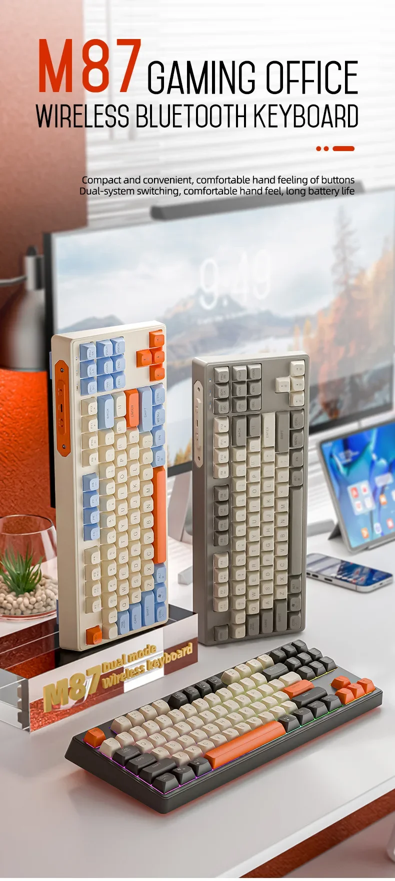 M87 BT Dual Mode Gamer Computer Laptop Bluetooth Ergonomic RGB Wireless USB Gaming Computer Accessories Mechanical Keyboard