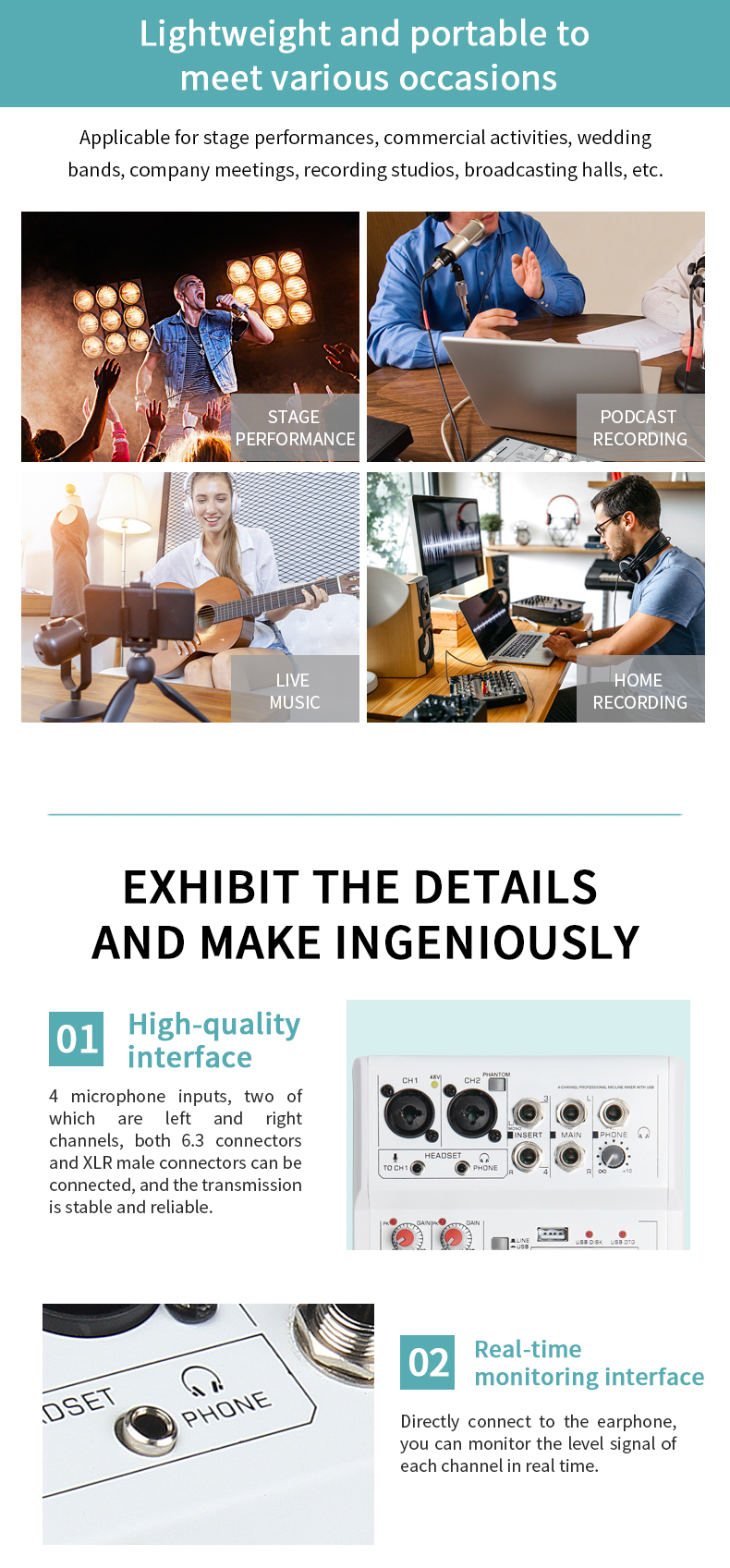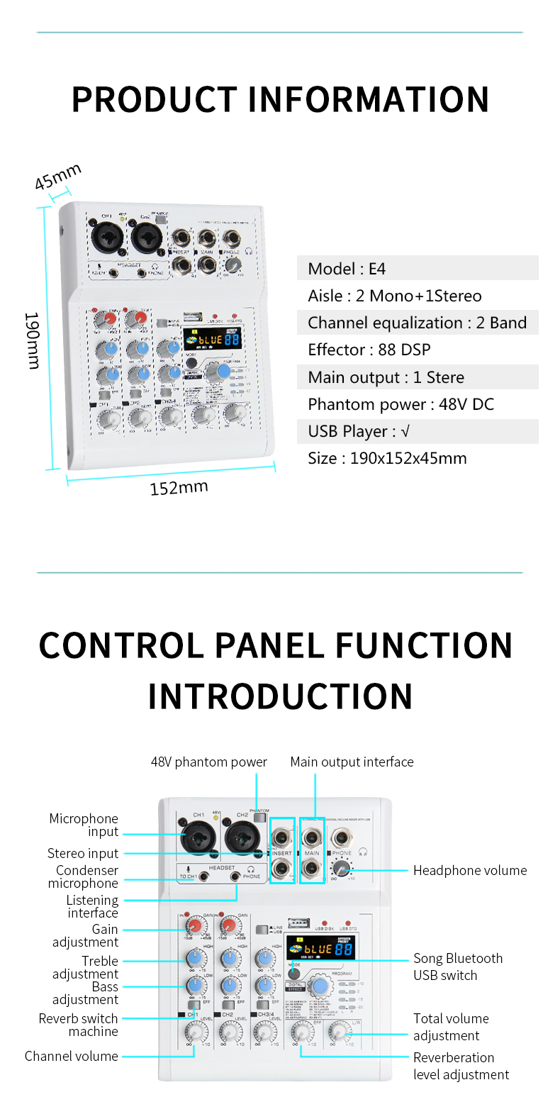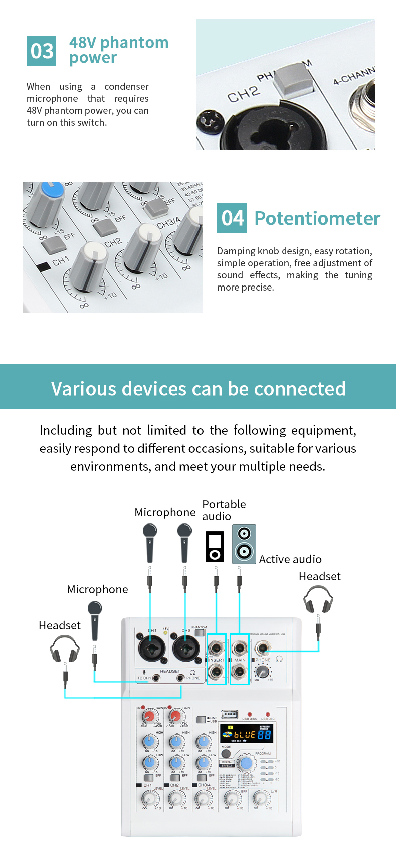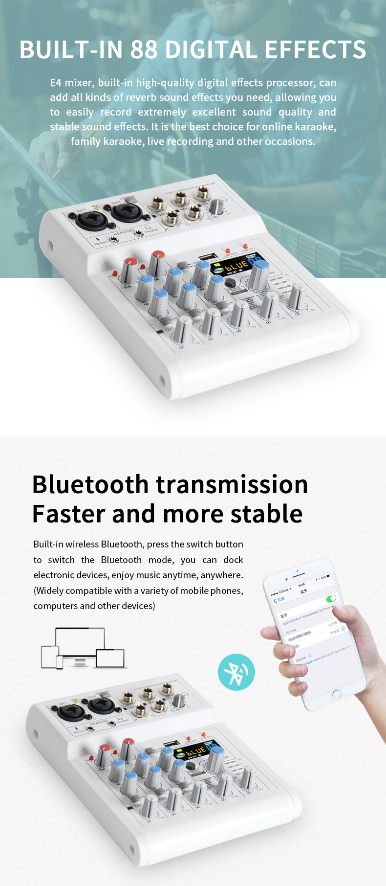 Professional Sound Quality: Equipped with high-quality preamps and advanced audio processing, the Manchez mixer delivers crystal-clear sound with minimal noise and distortion.