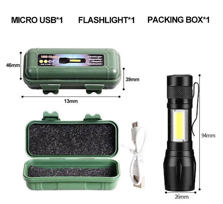 • Waterproof Design:The Mini Torch LED Rechargeable Flashlight Portable USB Charging Flashlight is designed to be waterproof, making it suitable for use in all weather conditions. This feature makes it an excellent choice for outdoor activities like camping and hiking.