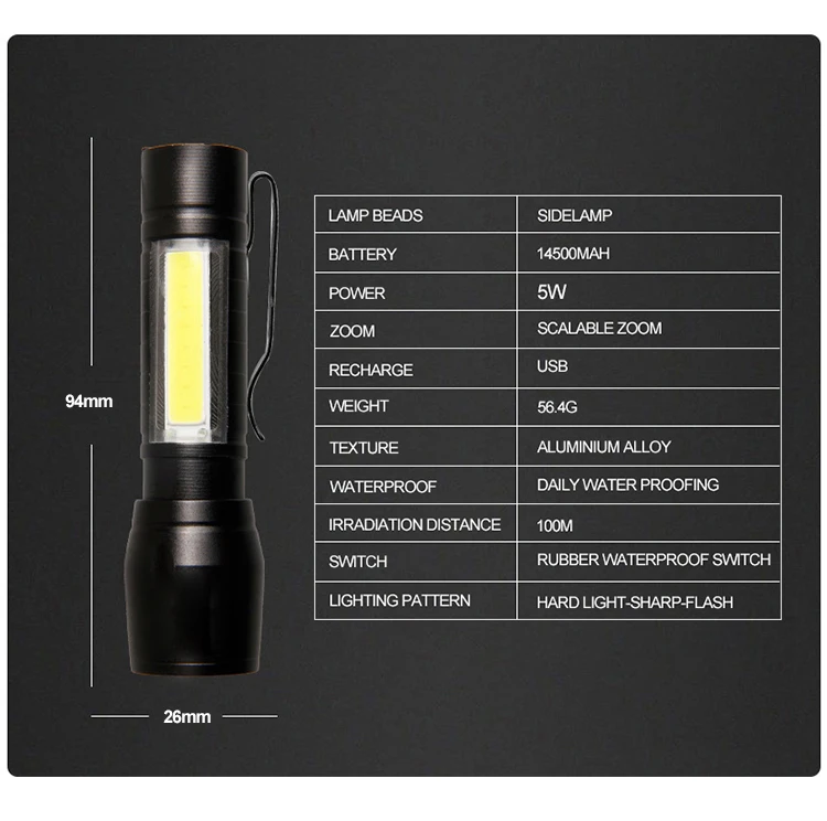 • USB Charging :The flashlight can be easily charged using a USB cable, making it convenient to use and eliminating the need for disposable batteries.