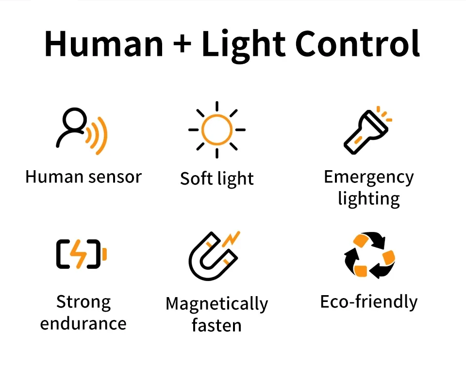 1: Human body induction sensor: This human body induction wardrobe light has high sensitivity and high precision, this LED wardrobe light can detect your motion within 5 meters, and automatically turn off within 25 seconds. No more pressing the switch button in the dark.