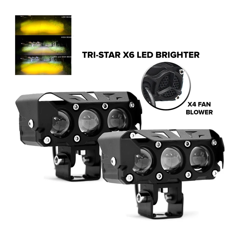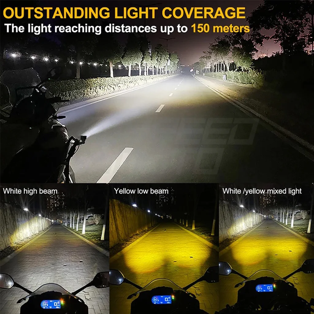 Motorcycle LED Spotlight Dual Color Hi/Low Beam Fog Lamps for Car Trucks SUV UTV 12V 24VMini Lens Headlight Driving Light