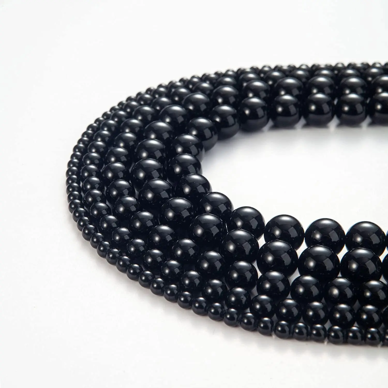 Natural Stone Beads 4/6/8/10mm Black Oynx Round Gemstone Loose Elastic Bracelet String for Bracelets Necklace Jewelry Making