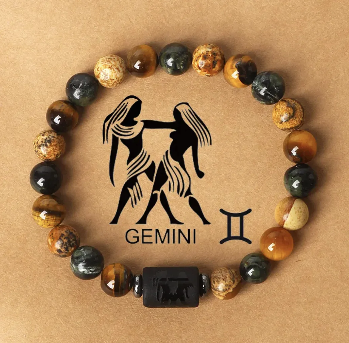 Natural Stone Tiger Eye Picture Jasper Round Beads 12 Constellation Bracelet for Men and Women