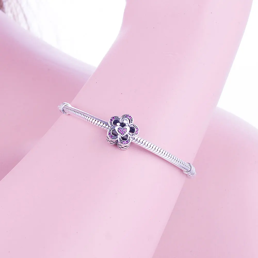 New 925 Silver Heart Shape Purple Pink Red Blue Green Zircon Charm Round Beads Fit Original Pandora Bracelet DIY Fine Jewelry