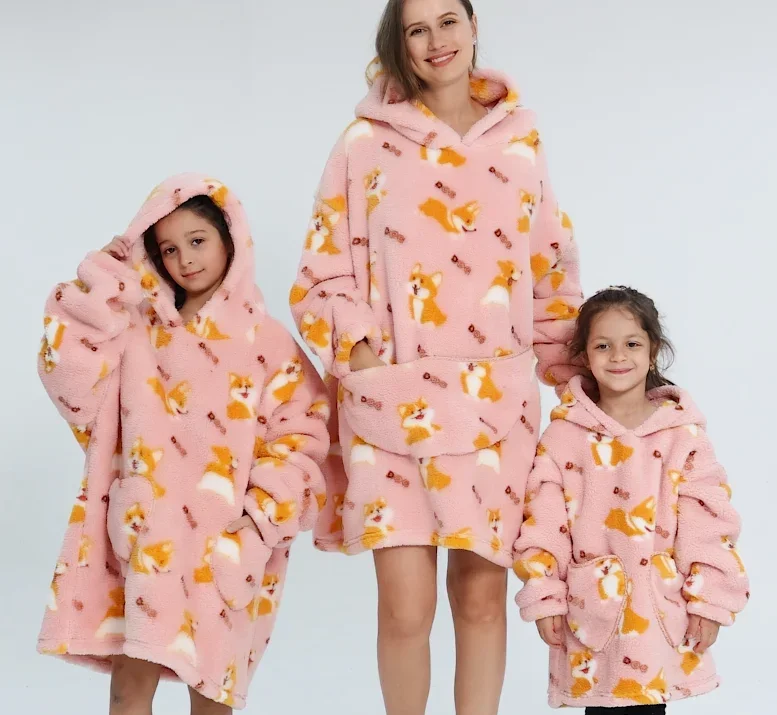 Oversized Shu Velveteen Warm Blanket for Winter Cozy Hoodie for Adults Kids Toddlers Halloween Xmas Gifts