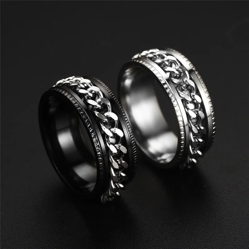 Punk Roman Numerals Stainless Steel Cuban Chain Rotating Rings for Men Spinner Fidget Band Release Anxiety Ring Knuckle Jewelry