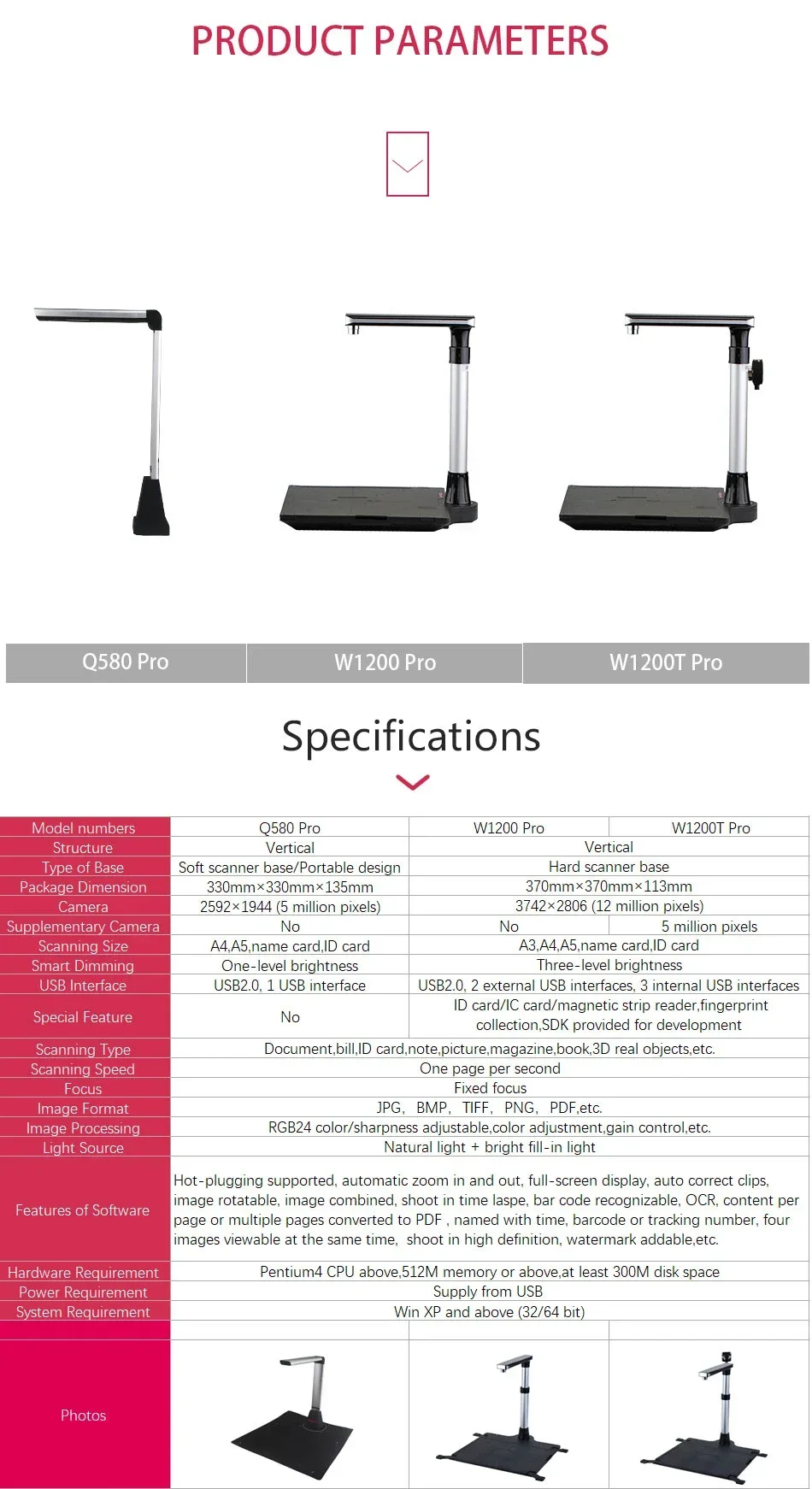 Scanner Q580 Book & Document Camera CimFAX, 5 Mega-pixel, Soft Base, Capture Size A4, English Software, for Office, Teaching