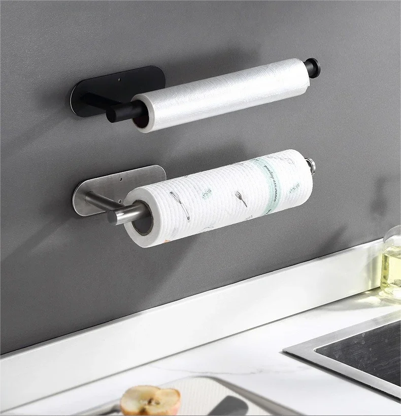 Stainless Steel Silver / Black Paper Towel Wipe Hanging Rack Can Store Cling Film Wipes Roll Paper Rack For The Kitchen Bathroom