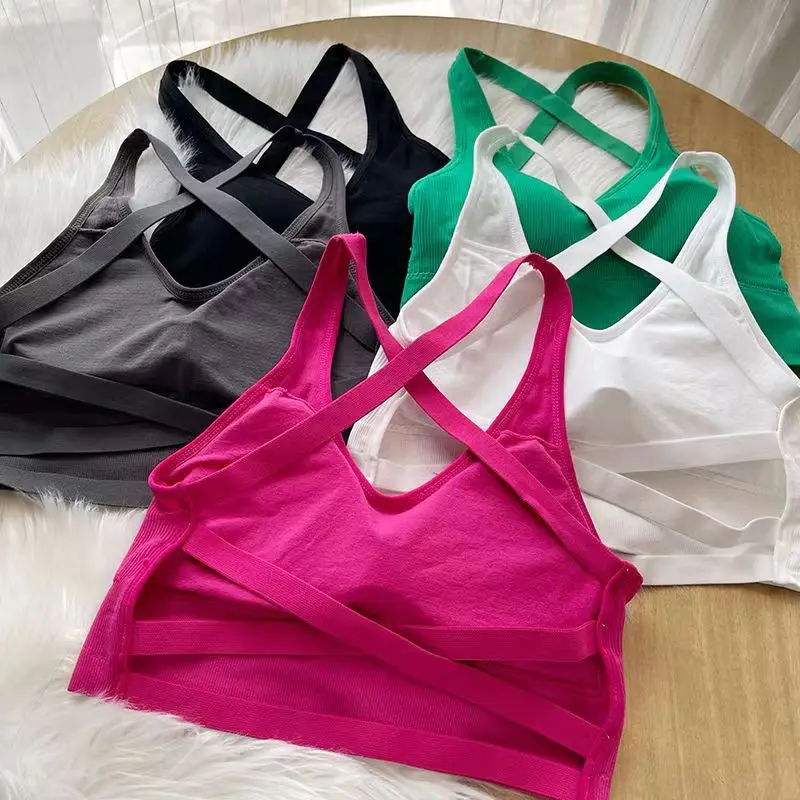 Summer Fashion Sexy Crop Top Women Bra Hollowed Back Cross Strap Yoga Sports Bra Breathable Underwear Female Fitness Vest