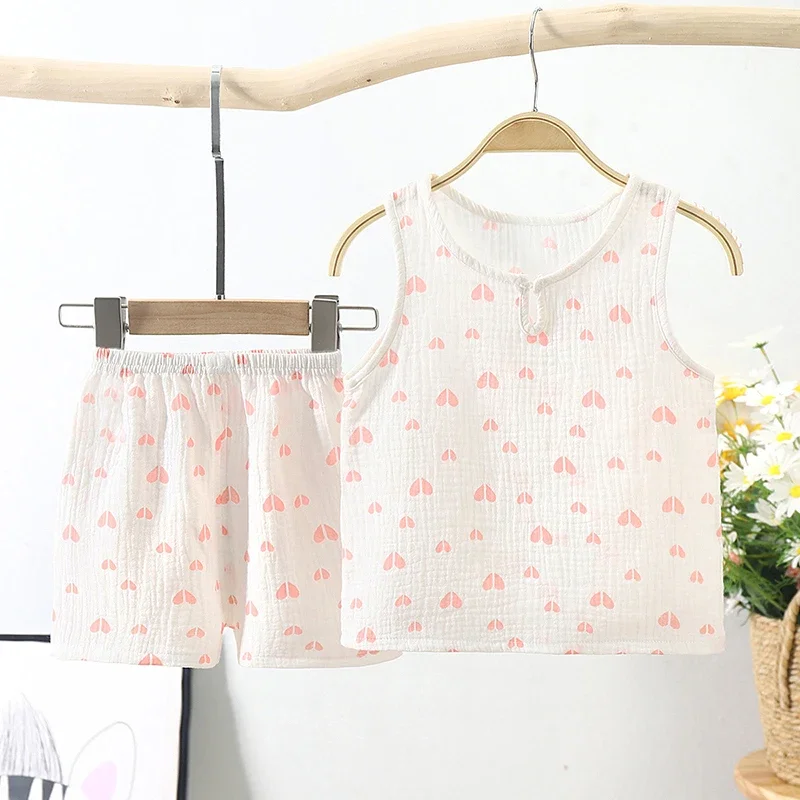 Summer New Gauze Cotton Boys And Girls Tank Tops + Shorts Suit Korean Children's Baby Home Clothes Infant 2pcs Sets
