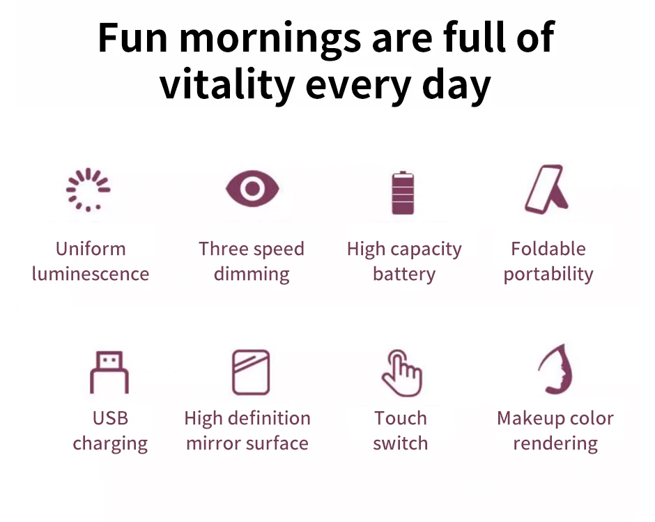 • LED Lighting :The LED light provides bright and even illumination, ensuring that you can see yourself clearly.