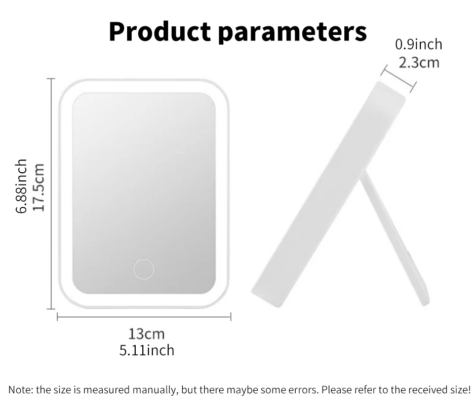 • USB Charging :Charge the mirror easily with a USB cable, making it convenient for use on-the-go.