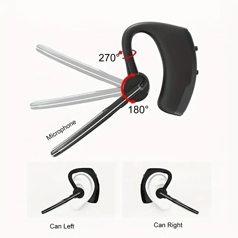The angle can be adjusted by 180-degree flip to make the headset fit the right or left ear, providing great convenience for users.