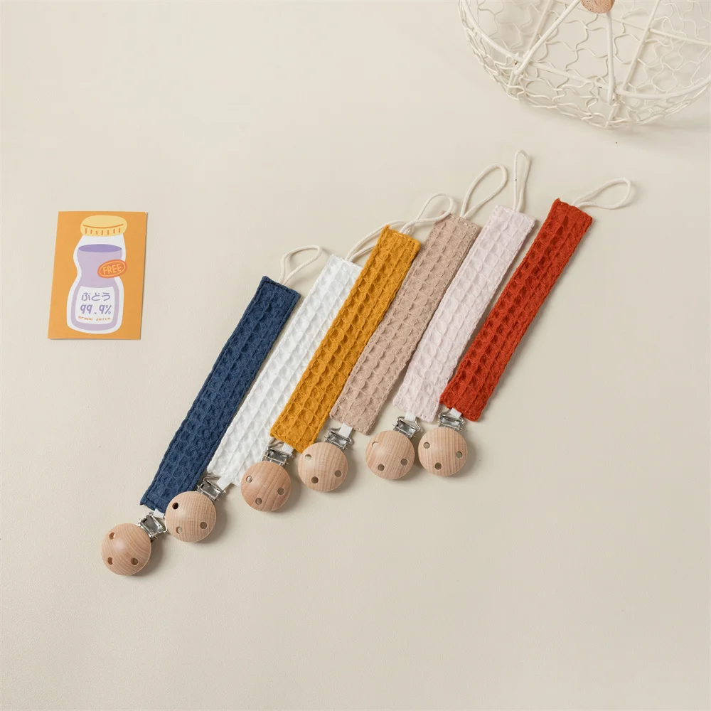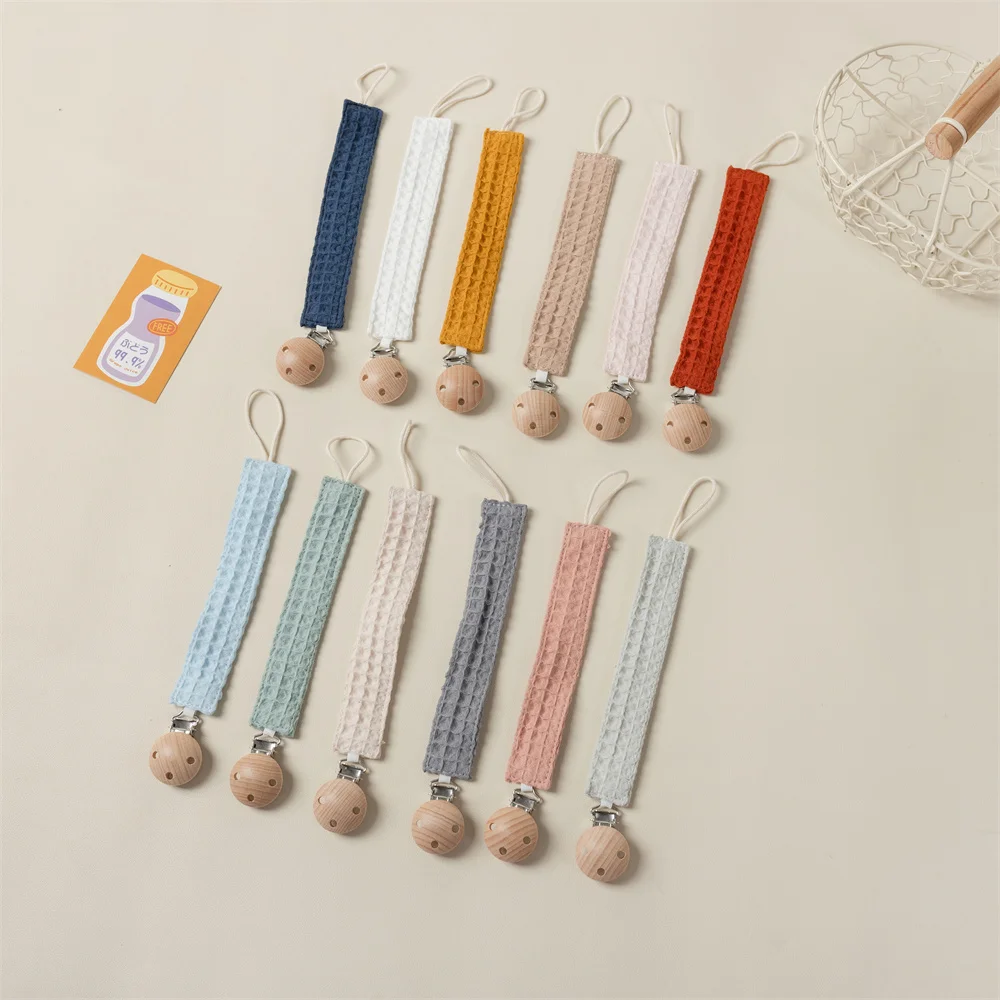 Waffle Cotton Baby Pacifier Clips Beech Chain Newborn Nipple Holder Teether Toys Dummy Soother Chain Baby Shower Gift 12 Colors