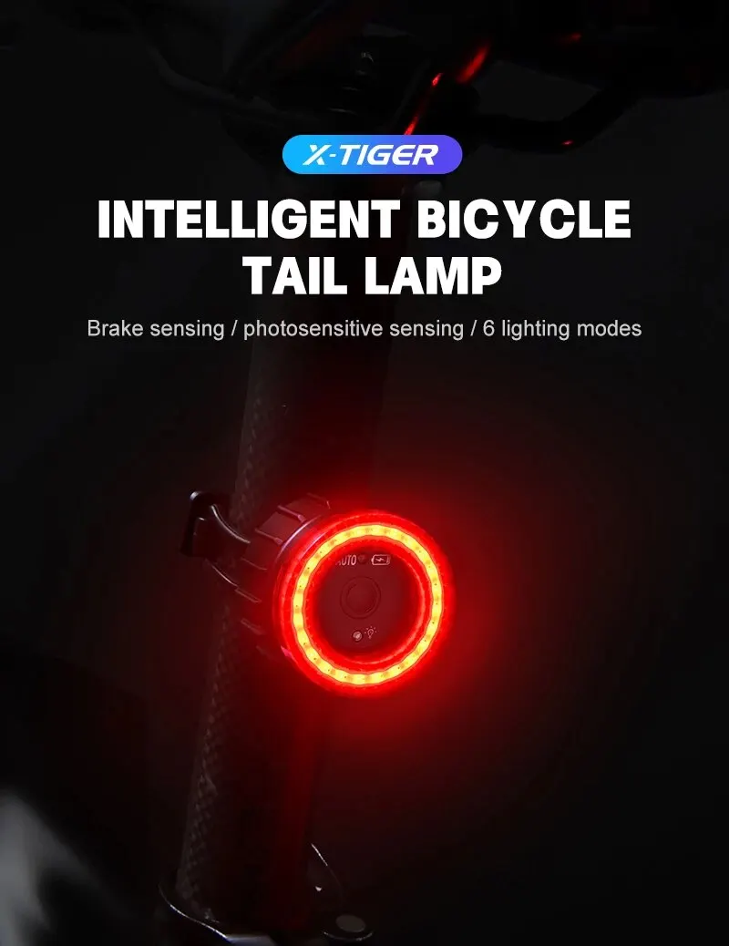 • Smart Sensor Technology :The X-TIGER Smart Bicycle Tail Light features a sensor that automatically triggers the brake light, ensuring increased visibility and safety during cycling.