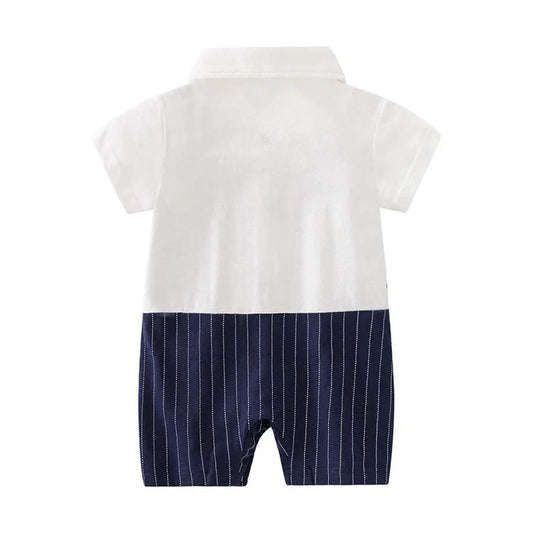 0-18 meses macacão infantil verão recém-nascido bebê cinza manga curta cavalheiro listrado moda macacão bonito gravata borboleta