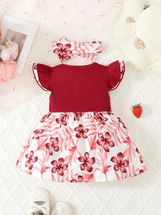 Vestido de tecido listrado estampado para meninas recém-nascidas de 0 a 2 anos com mangas voadoras
