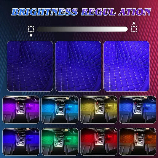 4Pcs Decoração Interior Do Carro Atmosfera Luz RGB Luz Ajustável USB APP Controle Música Ritmo LED Carro Decoração Luz Tira