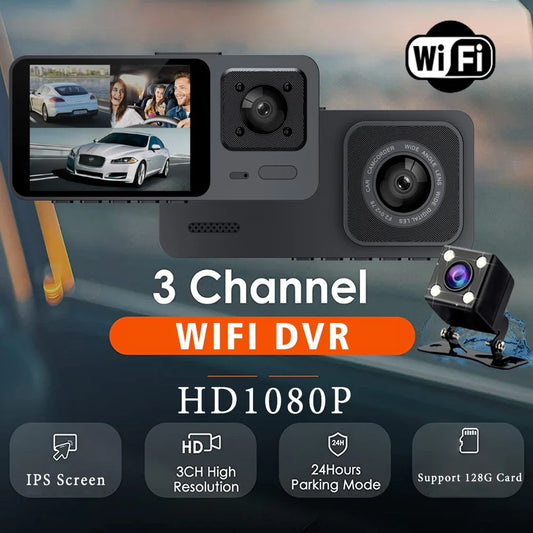 3 canais WiFi carro DVR três vias traço cam dentro do veículo câmera DVRs gravador FHD 1080P vídeo mini registrador traço camcorder