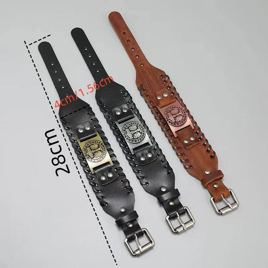 1 peça de couro de liga retrô de alta qualidade com fivela de martelo Thor em formato de sol estilo pulseira de moda masculina para férias