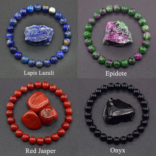 Pulseira de contas de pedra zoisita epidoto natural de 8 mm, bracelete masculino de quartzo, lava, olho de tigre, feita de pedra natural, joias para mulheres