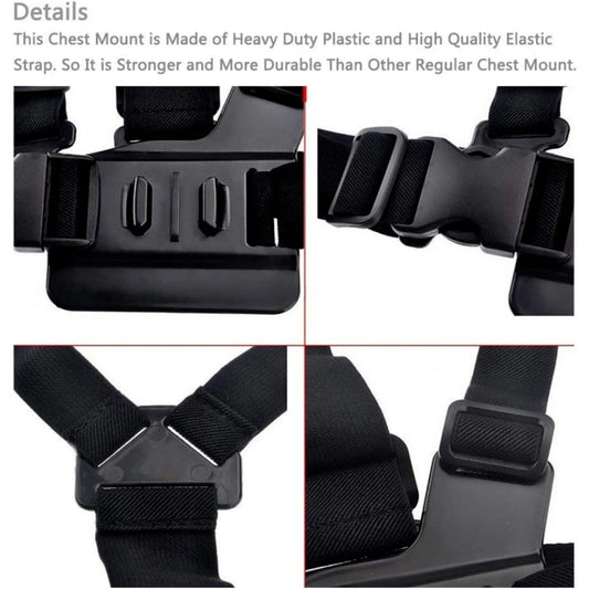 Correias de montagem para Gopro Hero 12, 11, 10, 9, 8, 7, 6, 5, 4 Session 3 MAX, Acessórios Negros, Arnés de montagem ajustáveis no pecho