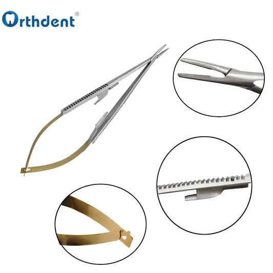 1Pc Dental Ortodôntico Implante Castroviejo Agulha Porta-Agulhas 14/16cm Reto/Curvo Cabeça Odontológica Ferramenta Alicate Cirúrgico Fórceps