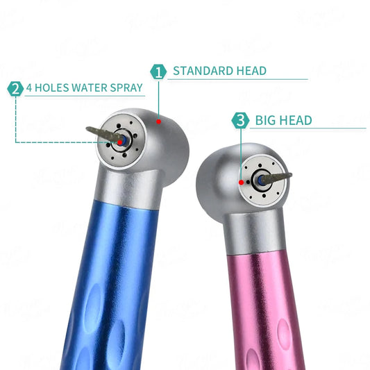 2/4 furos colorido dental alta velocidade peça de mão turbina de ar cabeça padrão botão de pressão 4 spray de água sem LED