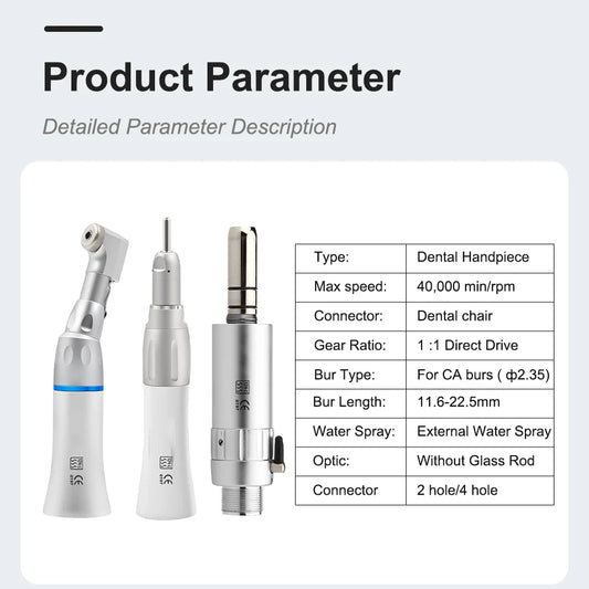 Peça de mão odontológica de baixa velocidade e contra-ângulo reto adequado para equipamento de laboratório odontológico de turbina de ar, ferramenta de polimento de micromotor de 2/4 furos