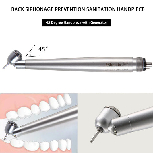 Botão de pressão de fibra óptica LED de alta velocidade para cirurgia odontológica de 45°, turbina e-gerador 2/4 furos, encaixe NSK