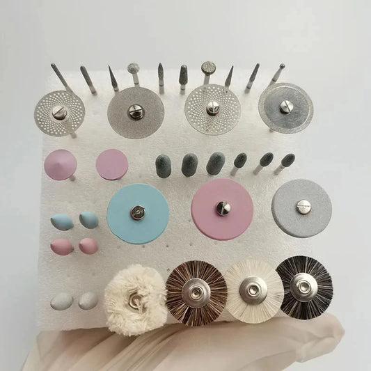 SYJH 35Pcs/Set Dental Lab Polishing HP Kit Cerâmica Porcelana Moagem Dentista Ferramenta Diamante Brocas Escova Material