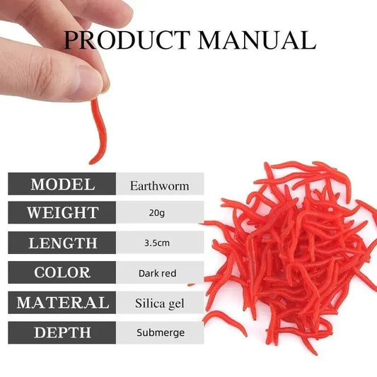 Bionic Red Worm Lure 100 peças 3,5 cm Gel de sílica realista Peixe Artificial Red Worm Earthworm Bait Submerge Simulação Isca Pesca