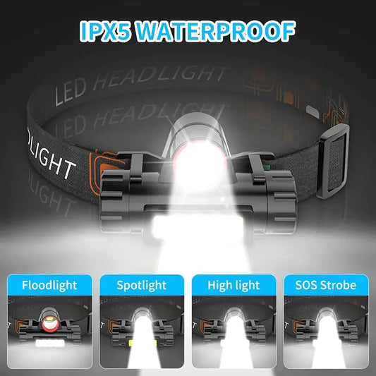 Farol LED USB COB recarregável, forte, magnético, potente, super brilhante, à prova d'água, para áreas externas