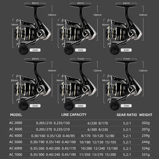Carretel giratório Max Drag 8KG para pesca AC3000 4000 5000 Carretel de metal com alça Sea Jig Carp Reel Fishing Coil Wheel