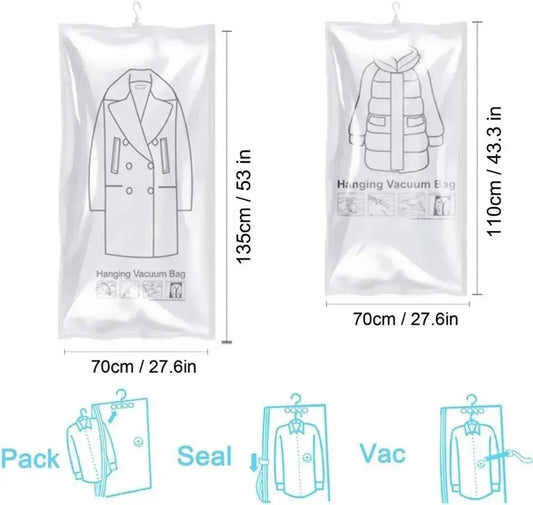 Hanging Vacuum Space Saver Bags Closet Organizer Storage Bags, Vacuum Seal Clear Bags for Clothes, Suits, Dress Or Jacke