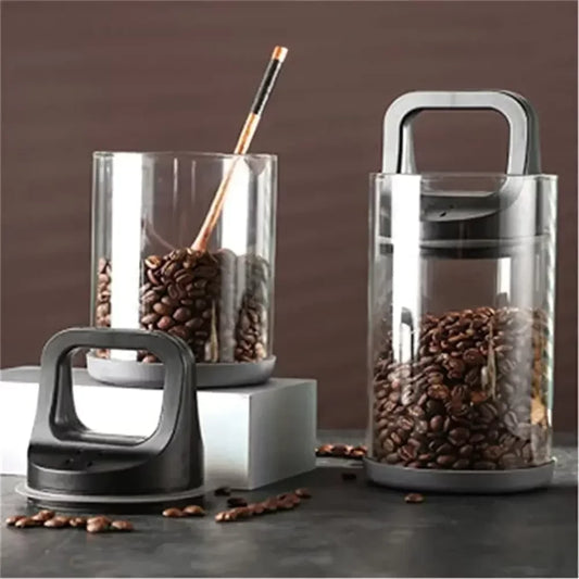 Latas de café em recipientes transparentes, grãos ventilados e selados a vácuo, tanque de manutenção fresco, armazenamento à prova de umidade
