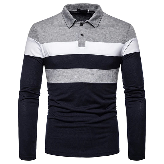 2024 Primavera Outono Nova Moda Masculina Listras Color Blocking Lapela Manga Comprida Camisa de Fundo Casual de Negócios POLO Tops