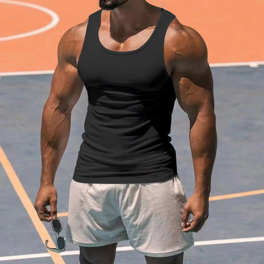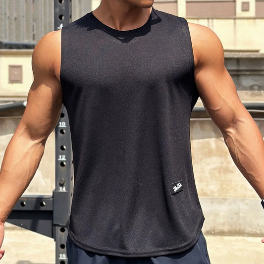 Nova tendência de verão masculina pulôver gola redonda malha inferior camisa esportiva fitness top sem mangas colete secagem rápida