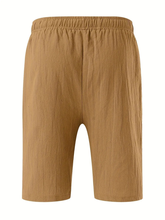 Verão MASCULINO Algodão e Linho Shorts Cordão Cintura Elástica Perna Reta Cor Sólida Respirável Diário Praia Cinco Calças Casuais