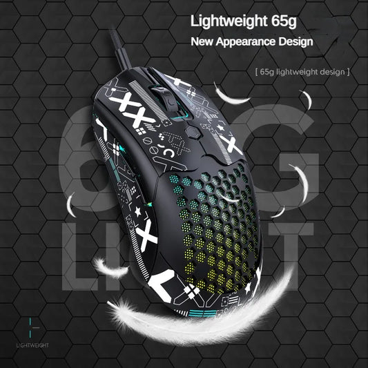 M5 Honeycomb Leve USB Mouse com Fio Ergonômico RGB PAW3325 Chip 800-12000DPI E-sports Game Mouse para PC Laptop Tablet