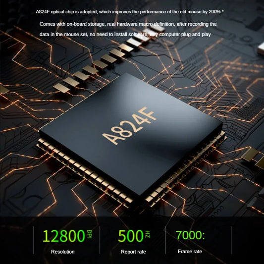 Novo mouse mecânico com fio para jogos, 9 teclas, definição de macro, 12.800 DPI, retroiluminado, para jogos, periférico de computador para PC com Windows